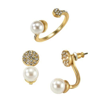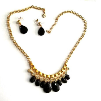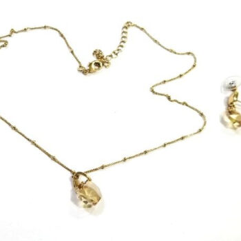 Unique – Estuche Collar Aretes, Metal Dorado Y Vidrio Elegante